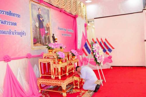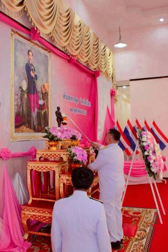 นายประเวช เเสนทวีสุข นายอำเภอทรายมูล ประธานในพิธีวางพวงมาลาถวายราชสักการะ เนื่องในวันคล้ายวันสวรรคตพระบาทสมเด็จพระจุลจอมเกล้าเจ้าอยู่หัว 23 ตุลาคม 2568 พร้อมด้วย นางภันตรี แสนทวีสุข ภริยานายอำเภอทรายมูล และคณะทำงานแม่บ้านมหาดไทยจังหวัดยโสธร