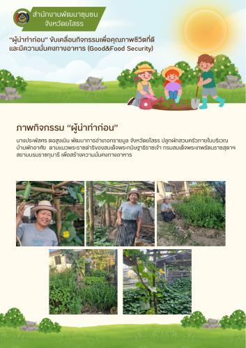 สำนักงานพัฒนาชุมชนอำเภอทรายมูล โดยนางประพัสศร ตอสูงเนิน พัฒนาการอำเภอทรายมูล จังหวัดยโสธร ดำเนินกิจกรรมปลูกผักสวนครัวในบริเวณบ้านพักอาศัย ตามแนวพระราชดำริของสมเด็จพระกนิษฐาธิราชเจ้า กรมสมเด็จพระเทพรัตนราชสุดาฯ สยามบรมราชกุมารี เพื่อสร้างความมั่นคงทางอาหาร